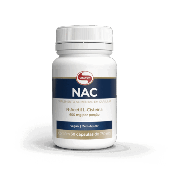NAC® é um suplemento alimentar composto pelo aminoácido N-acetil L-cisteína (NAC) isolado de origem vegetal com concentração de 600mg por cápsula.